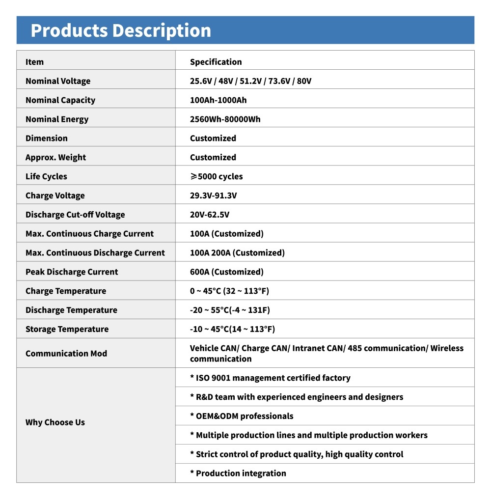 80V 560Ah 고용량 장시간 작동 LiFePO4 지게차 배터리
